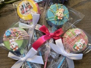 Every cookie, pretzel rod, and dipped treat is made by hand — thoughtfully crafted, carefully decorated, and designed to make people smile. Presentation matters just as much as flavor, which is why each order feels like a little celebration: elegant colors, charming details, and a touch of whimsy in every bite. Our party packages are designed to add a special touch to any occasion.