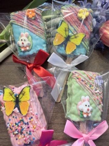 The Mini's Dozen, consists of 6 mini pretzels and 6 mini-Oreo's or mini-Chips-Ahoy cookies dipped in decadent chocolate and decorated. A fun bite sized addition to any order!